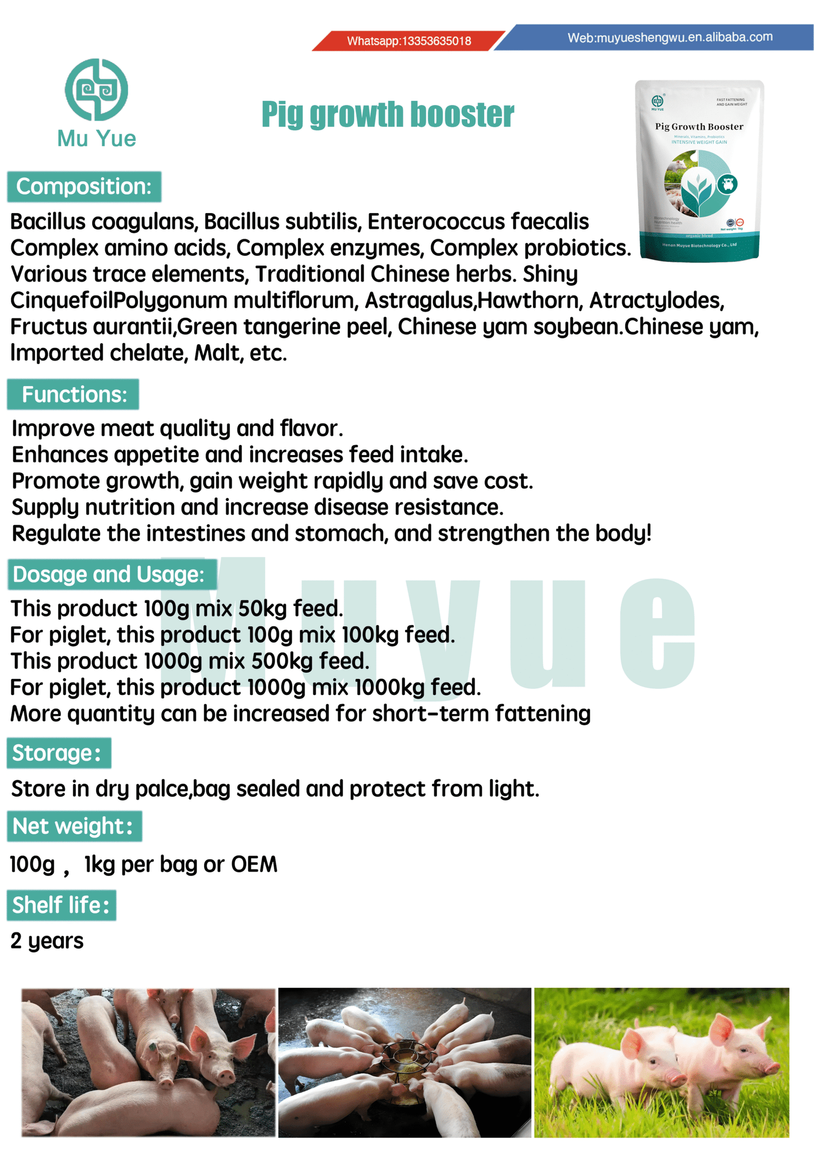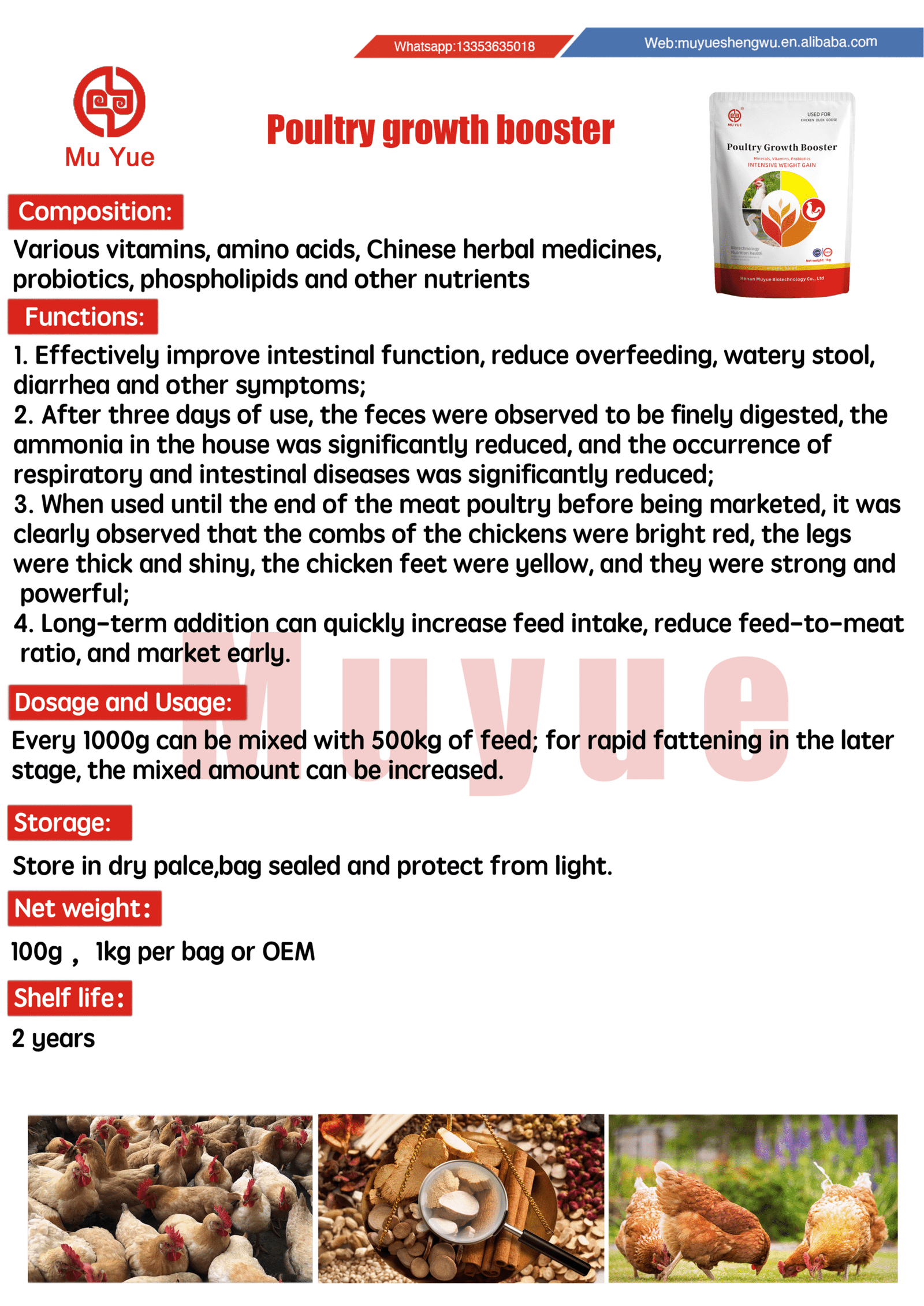 MUYUE is a comprehensive high-tech and joint-stock group enterprise which integrating R&D, production and sales together. Our main product range includes veterinary medicines(animal medicines) animal growth booster, Mixed feed additives, Feed Ingredients, Premix/Concentrate feed, Feed supplement/solution, and other animal health care product. We can provide you customer one-stop product and technical solution.